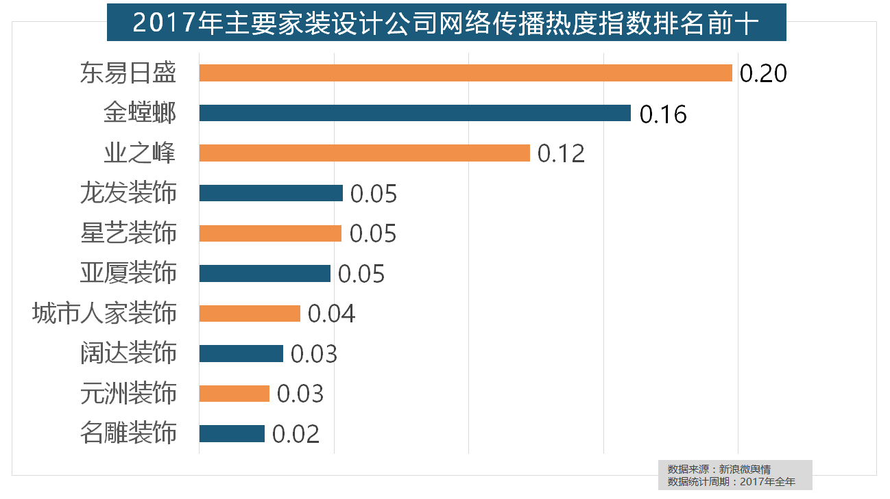 2017年,金螳螂、业之峰、龙发粉饰、星艺粉饰紧随其后。